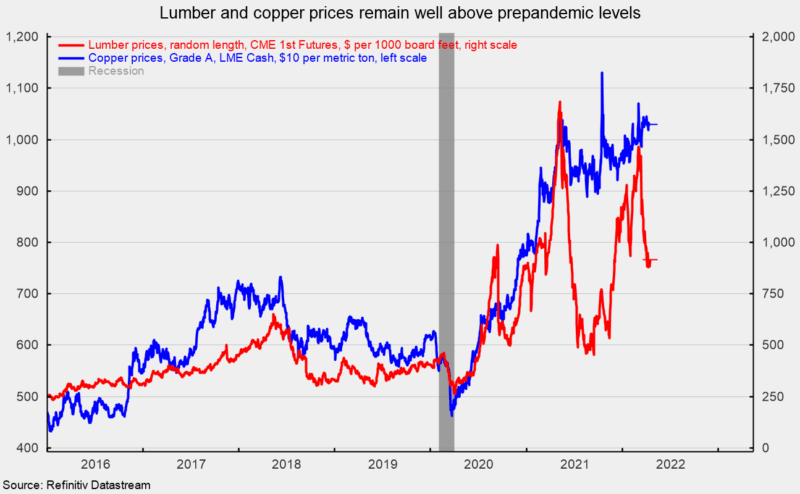 After a pullback in activity in the first three quarters of 2021, single-family activity has shown renewed strength. While the implementation of permanent remote working arrangements for some employees may be providing continued support for housing demand, ongoing home price increases combined with the recent surge in mortgage rates will likely work to cool activity in coming months. Threats to future demand combined with elevated input costs are weighing on homebuilder sentiment. The outlook for housing is becoming more guarded.